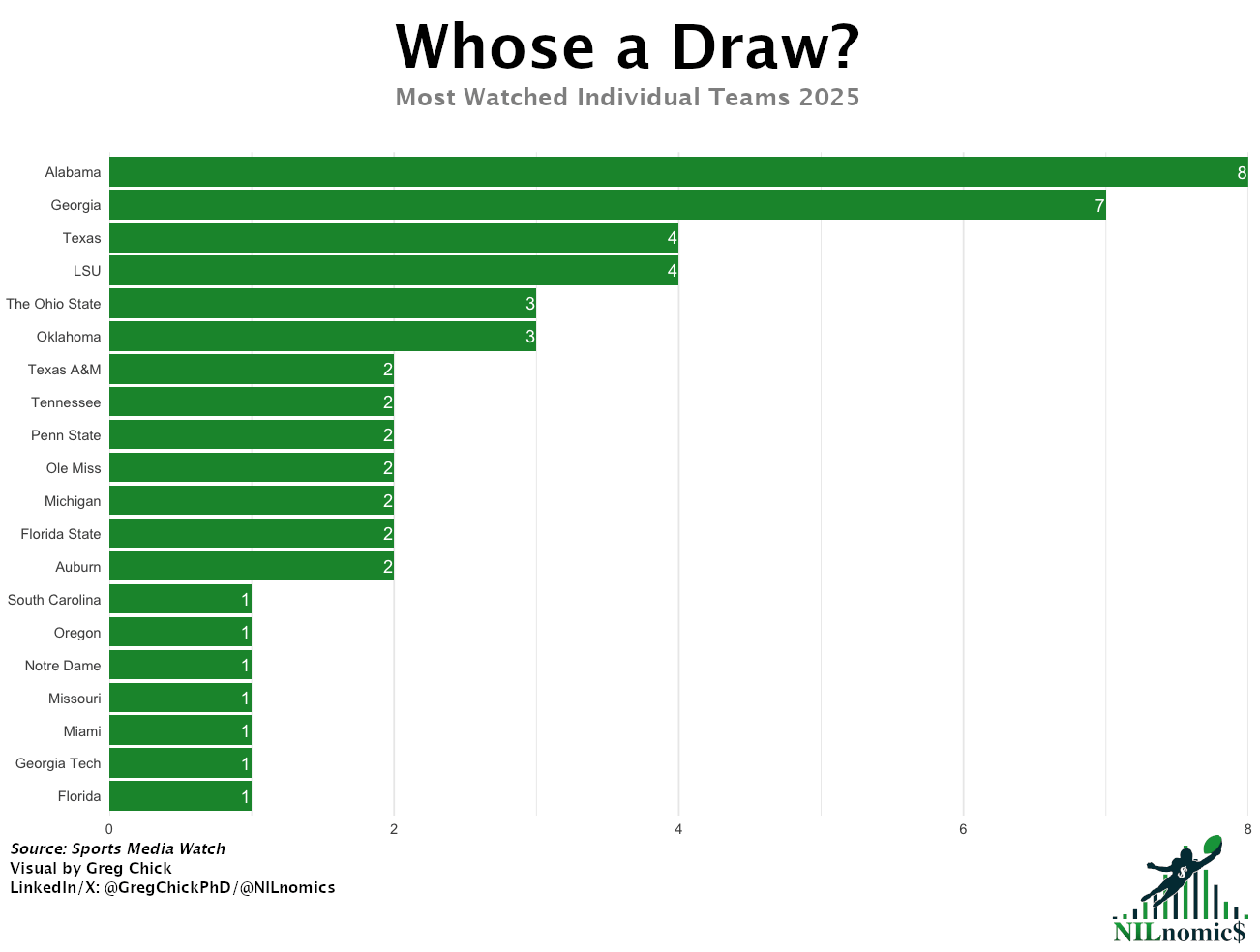 NILnomics is an independent data-driven newsletter uncovering the real numbers behind college sports finances with sharp insights, clear visuals, and exclusive datasets. Please send any thoughts, questions, or feedback to me at [email protected] and please follow me on X @NILnomics. Don’t forget all our data is available on Kaggle, code on GitHub, and FOIA documents on GoogleDrive. See you next week!