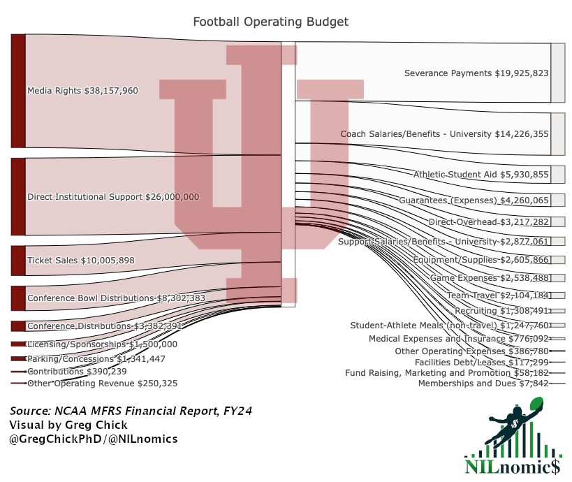 I’ve also continued, at many reader’s requests, producing sankey charts of football program’s operating budgets. This week I made the charts for the Big Ten & MAC. I posted them on X just now but you can also scroll to the bottom of this newsletter to see them too (CTRL+F the school name if you want to skip ahead to a specific school). Here’s the X post if you want to go there: