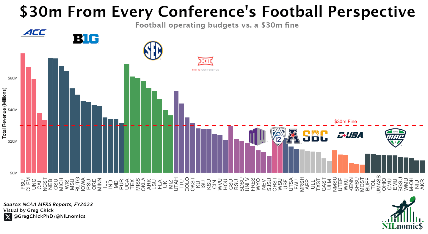 I recognize a fine like this isn’t being paid out of the football operating budget, but it is an interesting way to look at the finances of these football programs and what a hefty fine looks like in comparison.