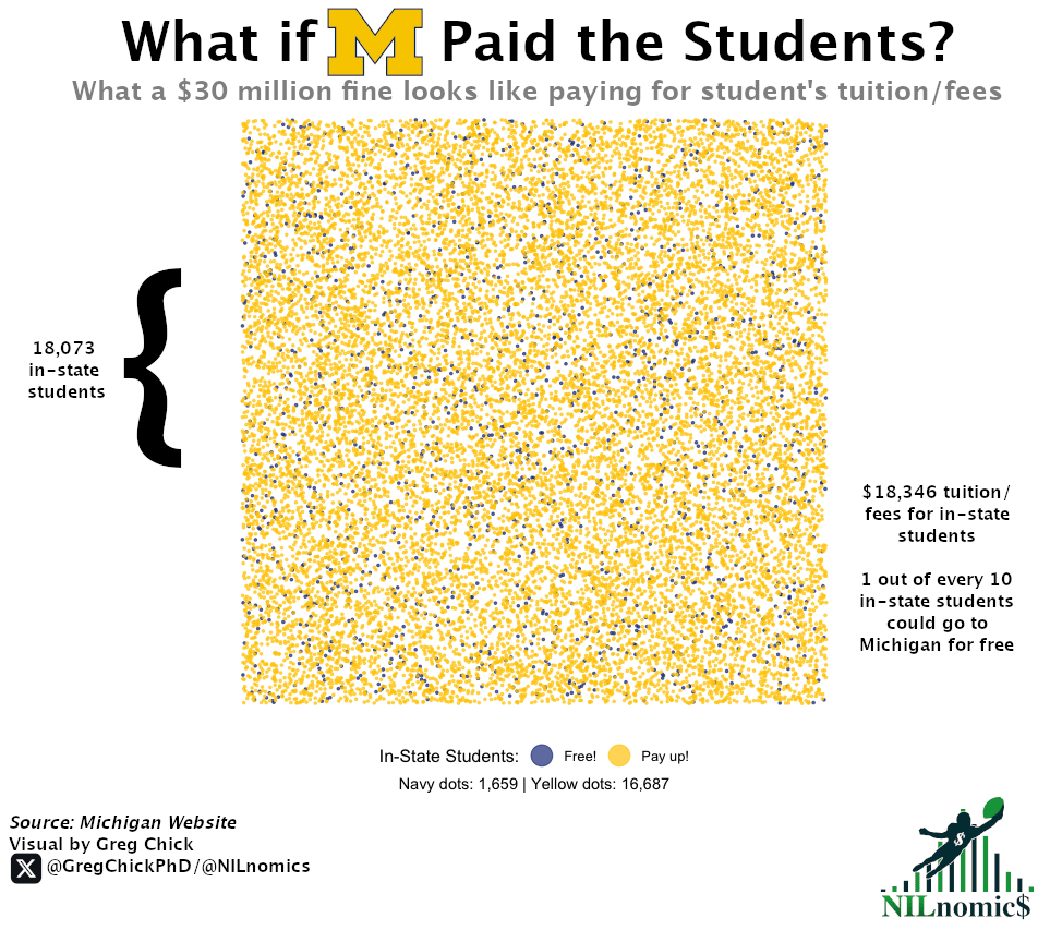 I won’t lie, I had several ideas on how to show what $30 million meant for Michigan. Unfortunately, I just wasn’t quick enough. Check out the graphs put out by Sportico:
